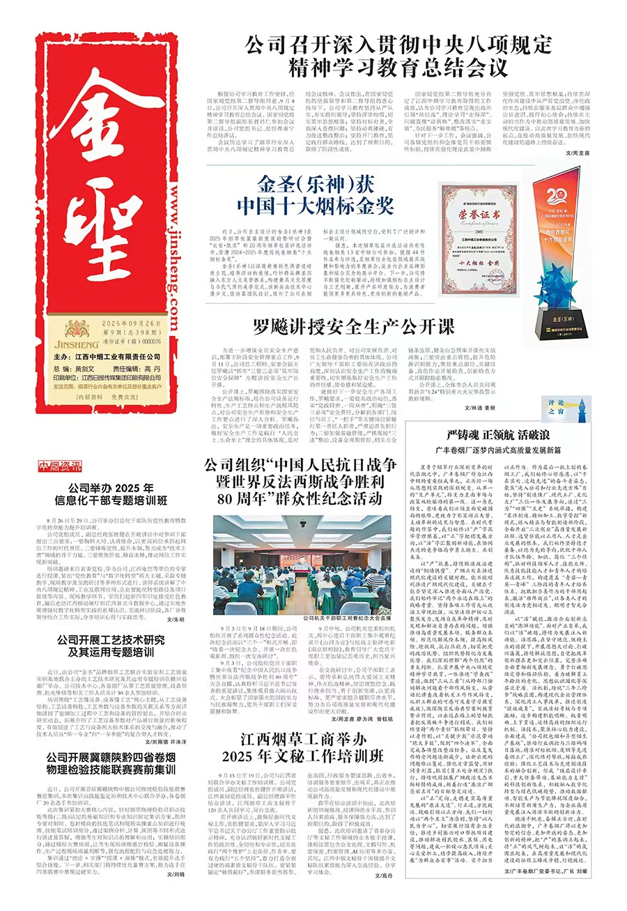 - [2025-09-24]【中新網】南昌卷煙廠:唱好安全“三部曲...